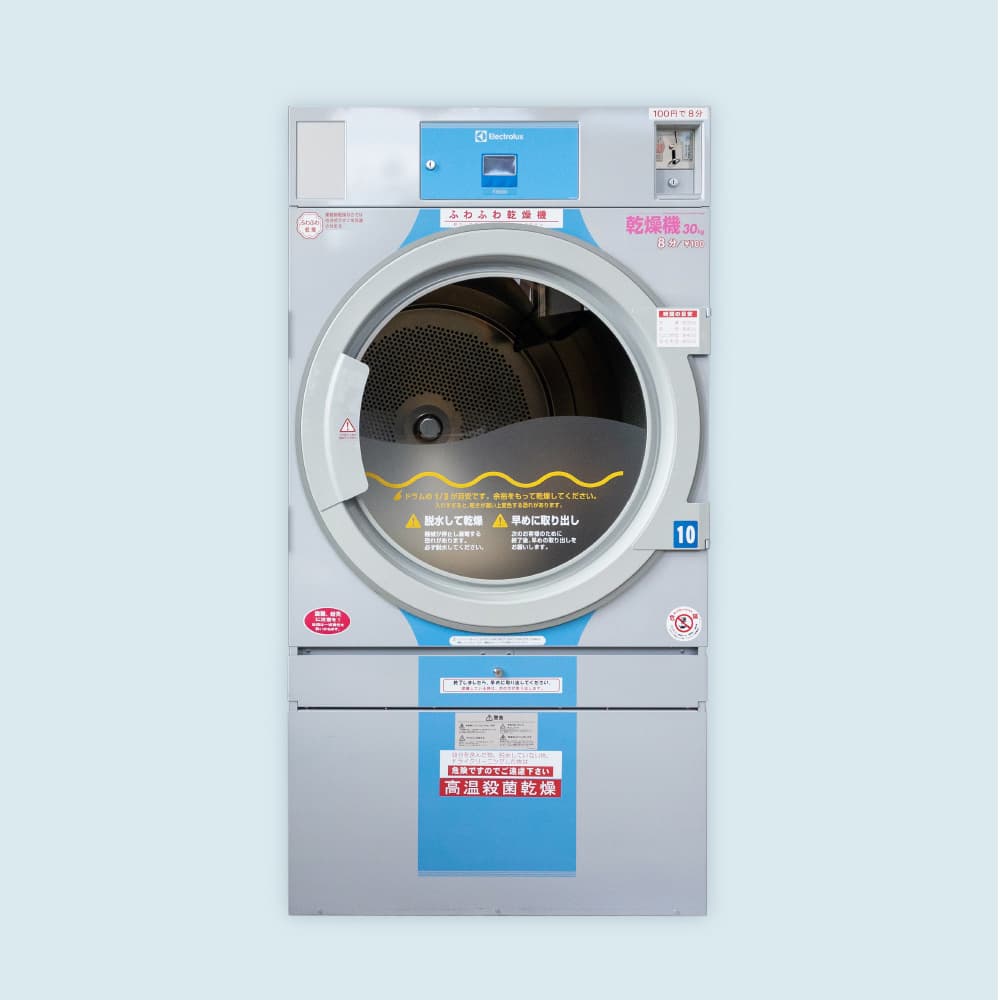 ガス熱源のため速乾性に優れ、ふんわり仕上がる乾燥機です。布団に生息するダニの死滅、ホコリの除去も行えるので、アレルギーをお持ちのお客さまにもオススメ。衣服や薄型の布団・毛布・タオルケットなどの乾燥に最適な中型サイズです。